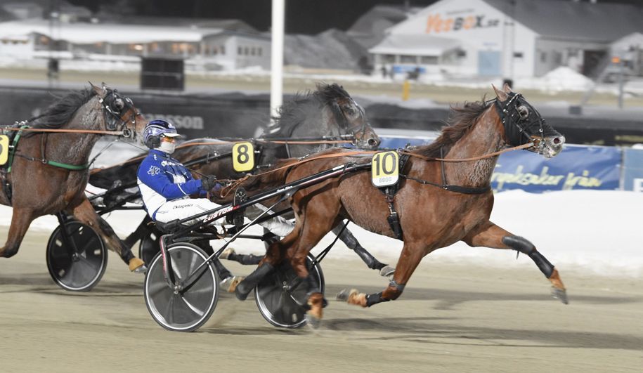 Sedan vidare till det sista loppet för kvällen där fortsätter Jan-Olov Åberg att ha stallformen i topp, denna gången så segrade han ännu en gång tillsammans med sin egentränade Jonases Ninja (e. Bork Odin) som då i och med denna seger tar en andra raka seger i raden. Åberg som hade två hästar från stallet ut i loppet och fick då pall placering med båda två. Jonases Ninja och Jan-Olov vinner loppet med totalt 1 längds marginal och sgertiden den blev 1.29,5/2140m. Prissumman 35 000kr.